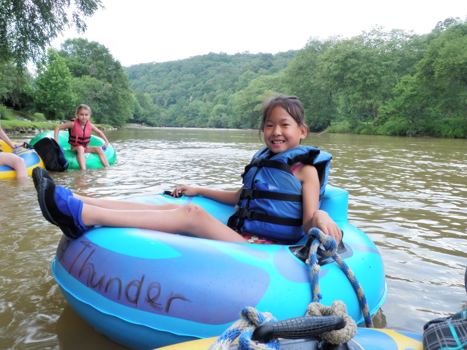 The train only took us a little way back and dropped us off to go tubing at Rolling Thunder. They took us on a bus about a mile up river and dropped us off. We floated down the Ocoee River where there were very small rapids along the way. It was lots of fun! Ashlyn fell in a few times. It scared her the first time, but the water was so shallow, just cold. Once we got back to Rolling Thunder, they drove us back to the train station which was in downtown Blue Ridge. We got some ice cream at a store called Three Sisters.